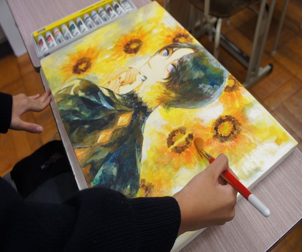 つくることが好きな人、自分の表現したいものがある人、漫画などが好きな人は、 ぜひ美術部へ!お待ちしています。