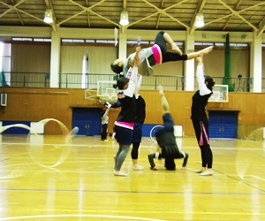 柔軟などの準備運動を終えた後、団体の練習や各個人の練習を行います。 |