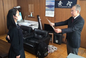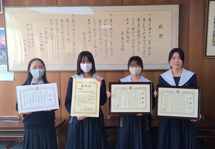 先日校長先生より、その功績を称え表彰状等を授与していただきました。